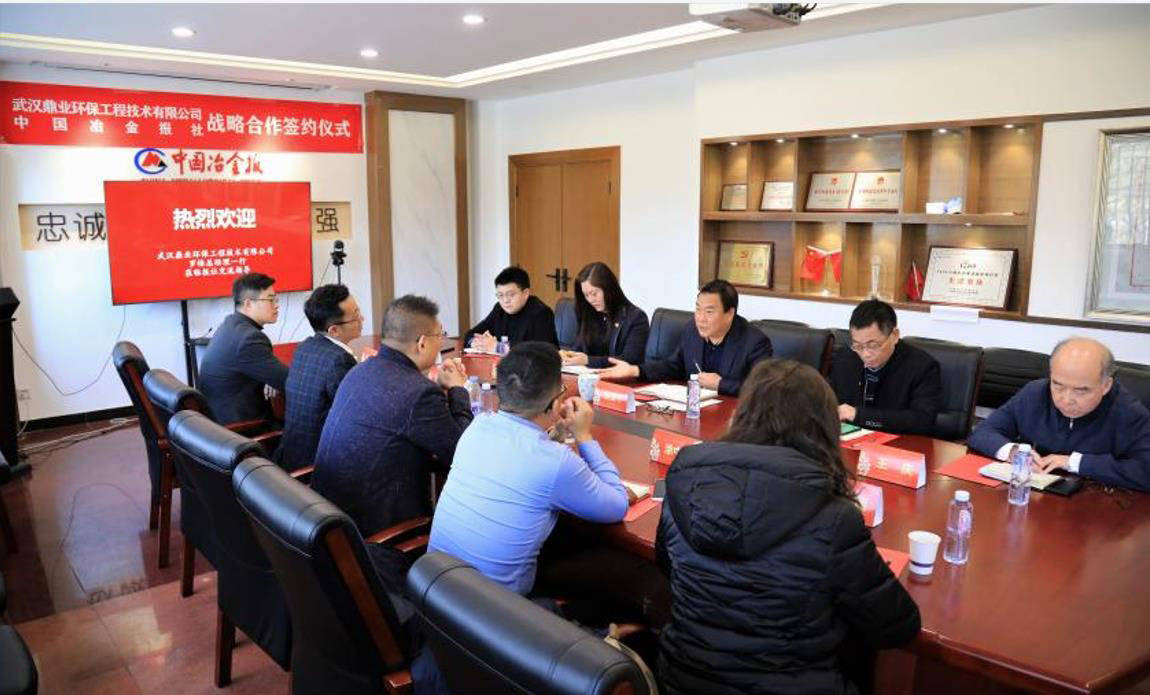 2月21日,武漢鼎業環保工程技術有限公司(以下簡稱“鼎業集團”)總經理羅恪與中國冶金報社黨委書記、社長陳玉千分別在協議書上簽字,雙方就此建立長期戰略合作關系。
