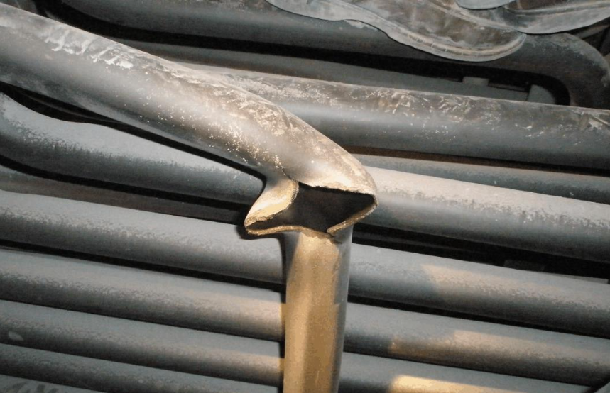 2.磨損:磨損爆管特征為管壁減薄呈刀刃狀、表面平滑、金相不變、管徑無變化。主要分為吹灰器蒸汽吹損(如內漏、不旋轉等)、機械磨損(管卡松動等造成金屬間粘著磨損)及煙氣飛灰磨損(對流受熱面尤其是尾部煙道中灰粉顆粒沖刷)。